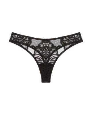You can never go wrong with a little black thong. The Puglia Thong is made from intricate mesh that surrounds your curves for a daring look. The mid-rise waist sits on your hips and the thong back offers minimal rear coverage for no visible panty lines. Pair with the Puglia Sweetie Bralette for a complete look.