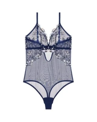 Sweet by day, sexy by night, Selita is iconic and pure luxury. Romantic floral embroidery lace paired with the sheerest mesh for an elegant feel. This one-piece bodysuit has embroidered floral details against the triangle cups that form a deep v neckline. Thin spaghetti straps are adjustable for the perfect fit and the thong back has no VPL while wearing. Featuring a keyhole detail in the back for added effect.
