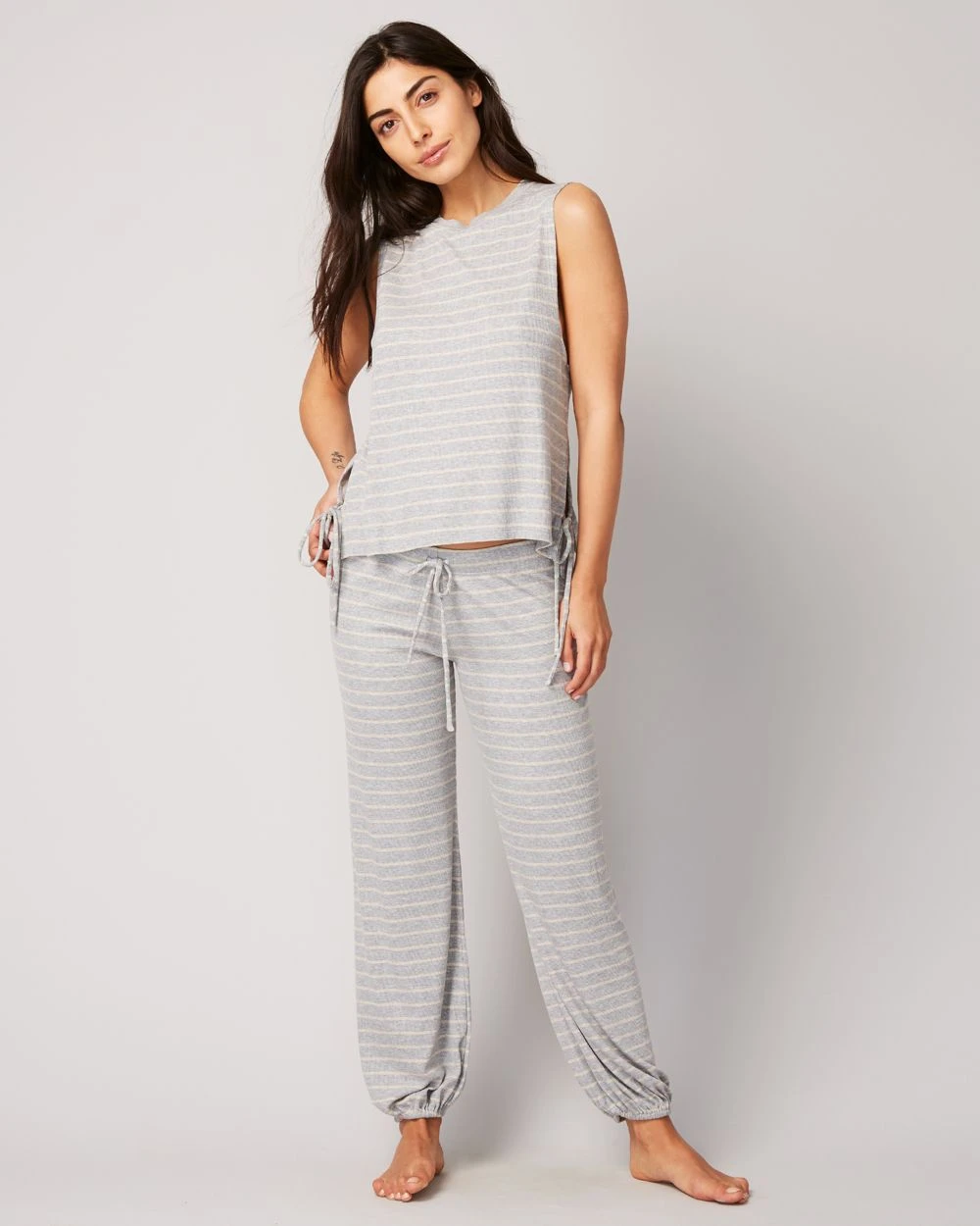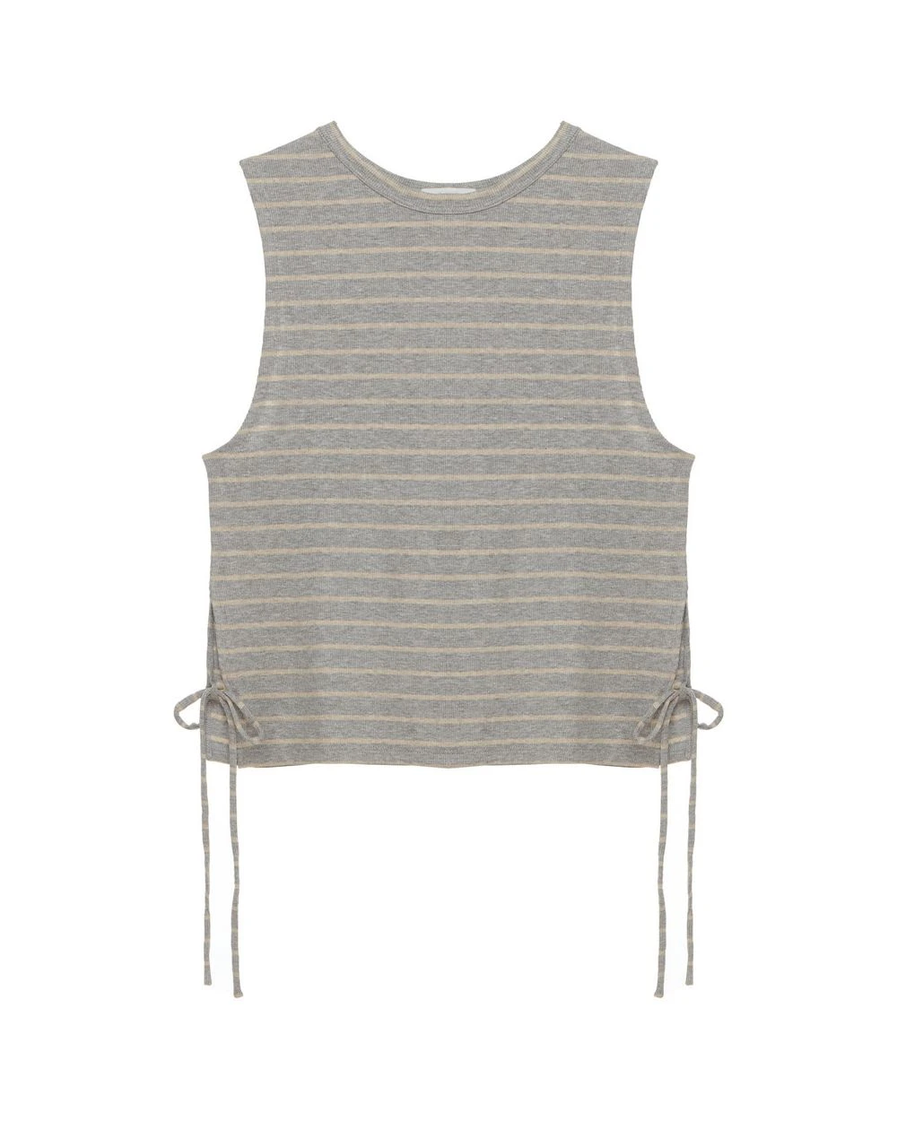 When we slip on this easy-breezy, absolutely effortless, weekend-ready ribbed tank, we immediately drop into a lower, slower, cozier state. And those sweet side slits and ties? Pure bow-filled bliss.