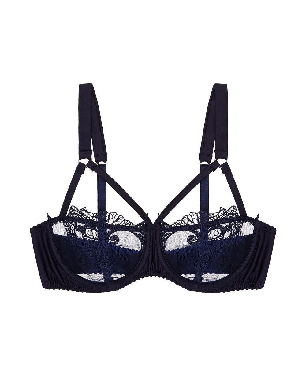 - Underwired cups in exquisite Italian tulle with delicate guipure embroidery