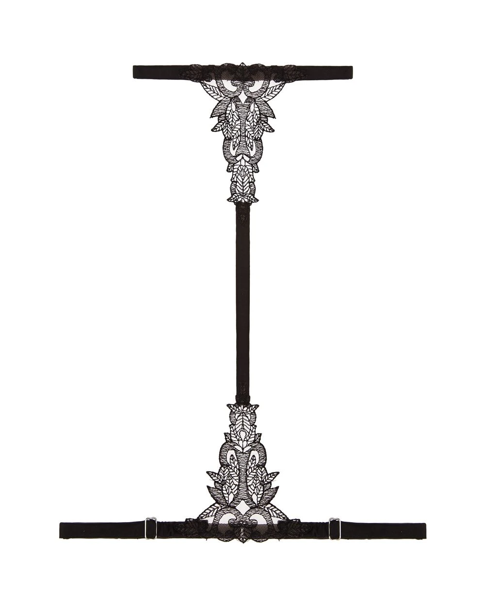 From its mesmerizing bespoke embroidery to its luscious silk straps, from its rich black palette to its decadent + sophisticated shape, we think this harness may very well possess the heart-healing properties of its namesake. You decide.