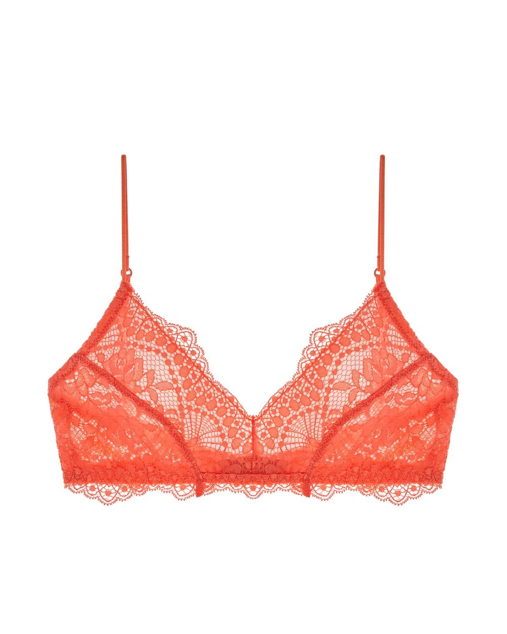 The perfect everyday bralette – its all-lace construction makes it perfect to wear as a layering piece or by itself. The scalloped lace edges will lay against your chest and the deep v neckline will keep eyes wandering. Complete with thin adjustable straps and a hook and eye closure back.