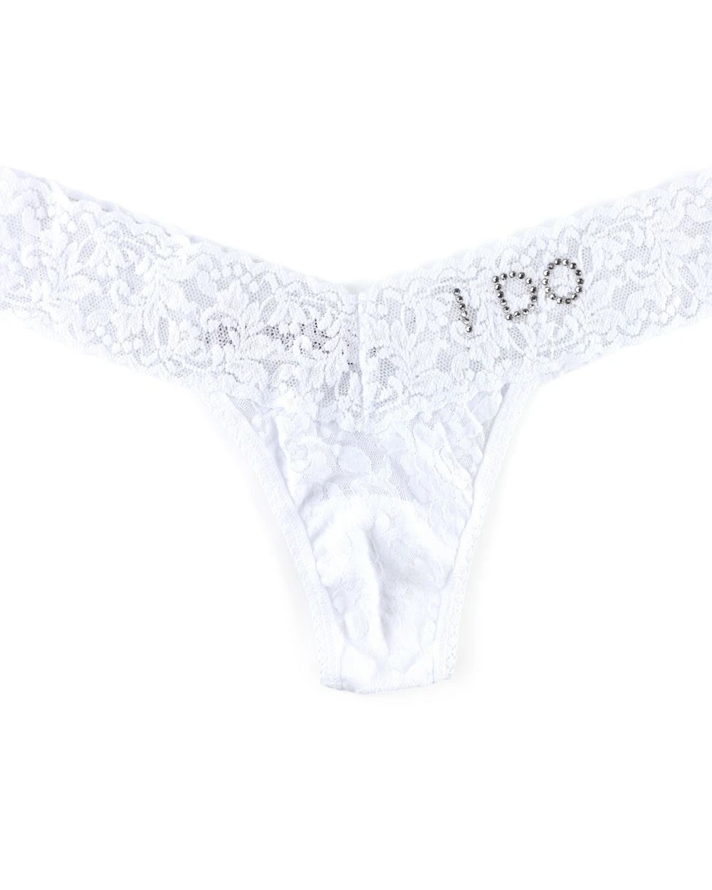Something old, something new, something borrowed, something totally blinged out. That’s how the saying goes, right?? These classic Hanky Panky thongs are embellished with Swarovzki Crystals that spell out “I DO”. Perfect for a sweet bachelorette gift, for under the dress, or for the honeymoon (because husband deserves lingerie as much as you do). In pale blue and bridal white. By the power invested in us, One Size Fits Most.