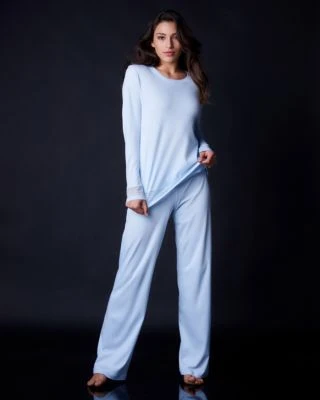 HANRO is a leading luxury brand for 136 years. Made of the best materials, the products are the definition of simple elegance. With its 100% Mercerized cotton construction and modern striped lace at the hemline, the Ira Long Sleeve Pajama is anything but ordinary. The top is made with long sleeves and a classic scoop neckline, paired with an elastic waistband pant for the ultimate lounge look.