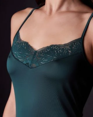 HANRO is a leading luxury brand for 136 years. Made of the best materials, the products are the definition of simple elegance. Decorated with delicate lace detail across the neckline, the Lucy Spaghetti Cami is your go-to for layering under your favorite sweater or wearing as you lounge. Thin spaghetti straps meet to form a comfortable racerback with lace detail for a luxurious finish.