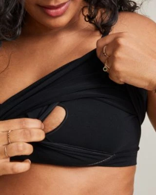 HATCH designed their collection of underpinnings with functional details in luxe feel-good fabrics, so that underneath it all you feel like yourself. The Essential Pumping Bra is seamless and with no hardware for a sleek look while the V neckline offers a modern twist. For easy breastfeeding, pull the fabric against the cups to the side to nurse your newborn.