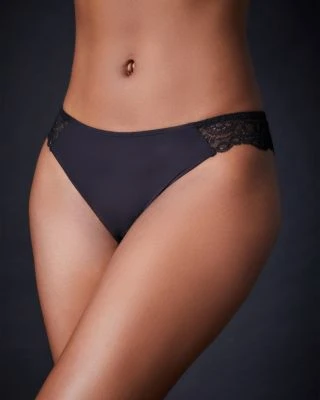 Upgrade your everyday thong with this low-rise style that will mold to your body for all-day comfort. Made with stretch fabric and elegant laser-cut lace for added detail on the sides and back that will lay flat against your curves.