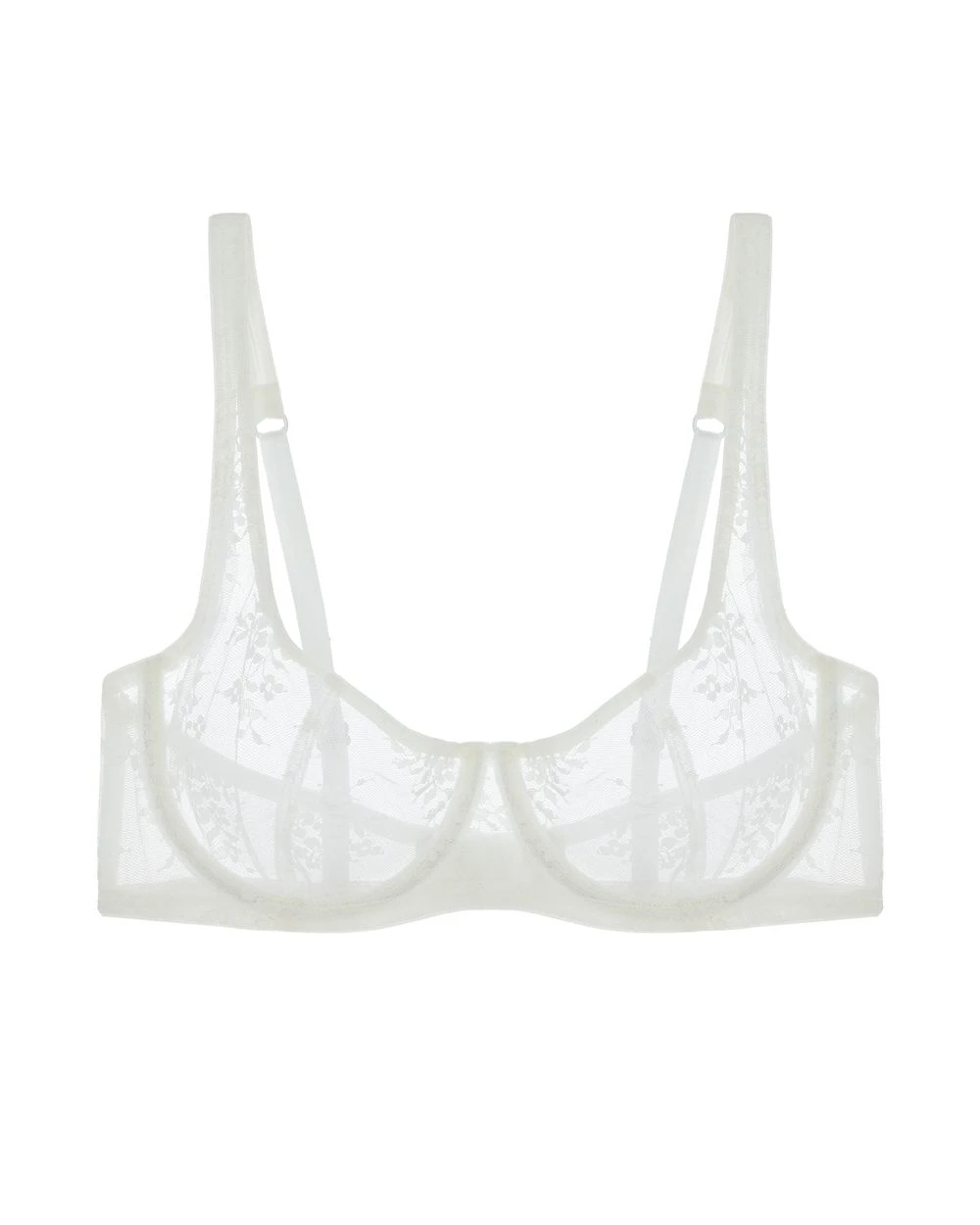 This fabulously fresh scoop neck demi silhouette is constructed from delicate botanical lace and sheer mesh. It’s as effortlessly elegant as it is stunning.