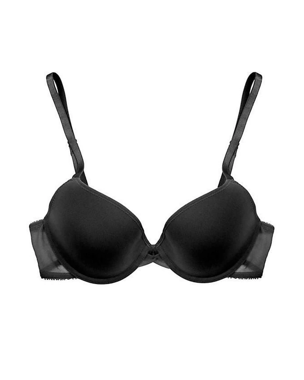 OnGossamer’s best-selling bra has a graduated bump of padding that creates cleavage and a super-low plunge neckline to show it off. It also features a seamless, fine mesh finish, making it a great everyday bra for wearing under t-shirts and other clingy clothes. An expert fit-tip: the French knot center can be twisted to create a more pronounced push-up effect.