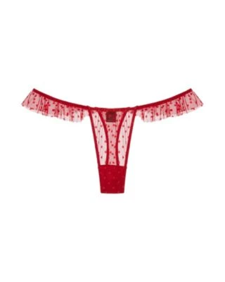 Decorate your hips with the Coucou Lola Ruffle Thong. Less is more with the sheer mesh body construction that is complimented with polka dot embroidery design. The thong back offers minimal rear coverage and the thin waistband features a ruffle design that matches perfectly to the Coucou Side Ruffle Bralette.