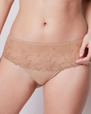 From the abstract garden-of-earthly-delights embroidery to the cheeky bum this peachy keen and delightfully airy floral bouquet of a boyshort is delicious indeed.